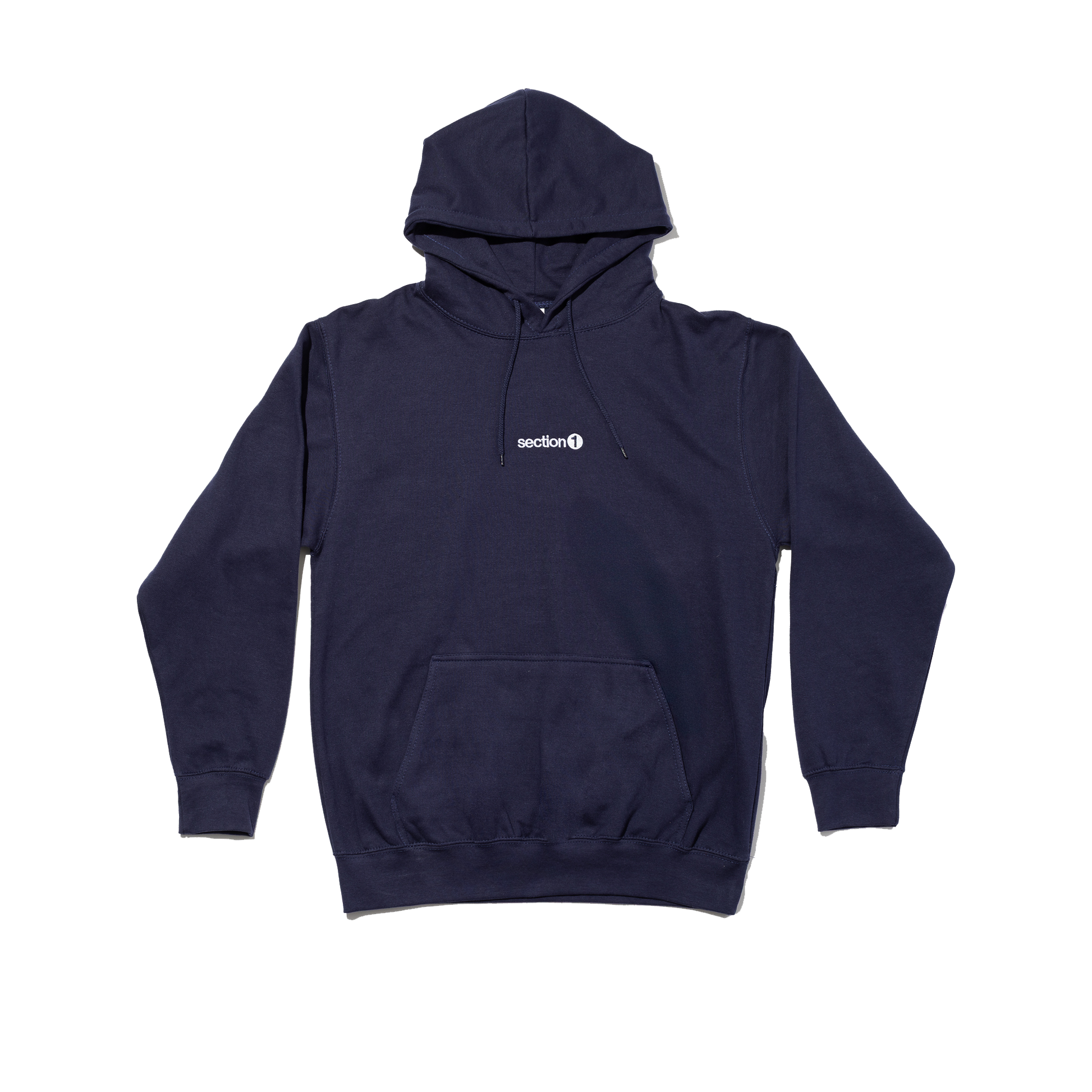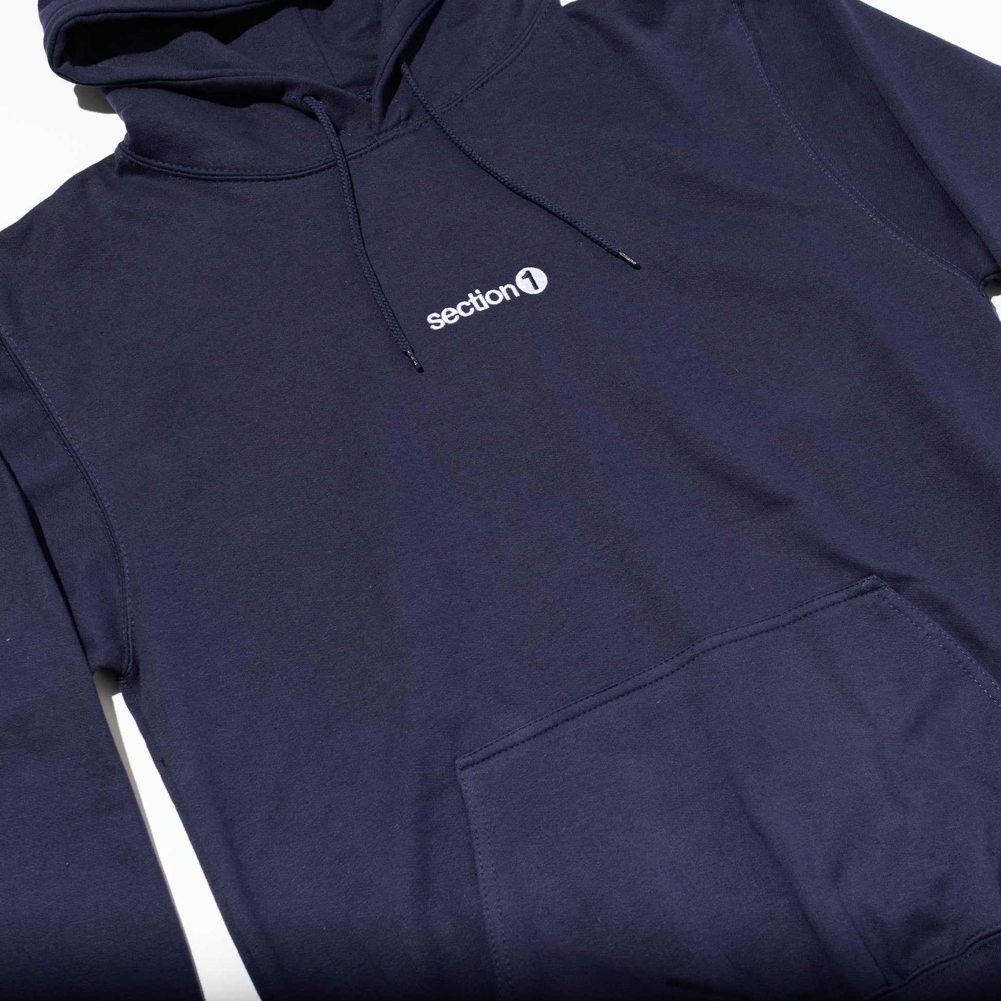 Limited edition embroidered section1 on navy Gildan 18500 hoodies, sizes SM-XXL.